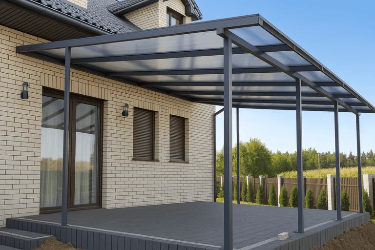 Проект "ФГБ - 3898" - хороший одноэтажный дом для постоянного проживания из газоблоков с террасой. Площадь гаража 38.00 м2 с размерами 8 на 5.