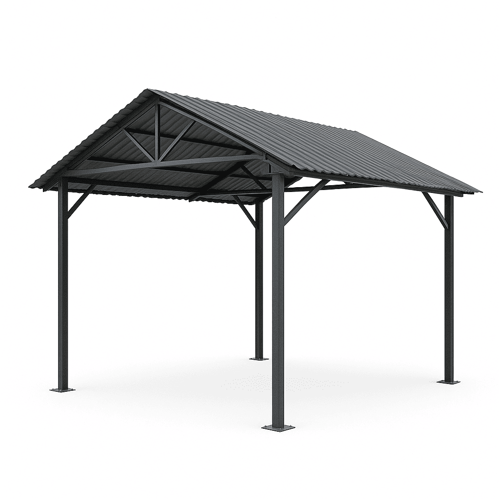 В зависимости от назначения и масштаба проекта мы предлагаем изготовление навесов уличных из профильной трубы, металлокаркаса, поликарбоната или металлочерепицы. При этом учитываются нагрузка, ветровая зона, уклон кровли и особенности основания.